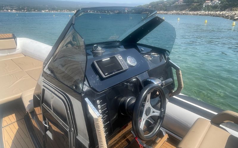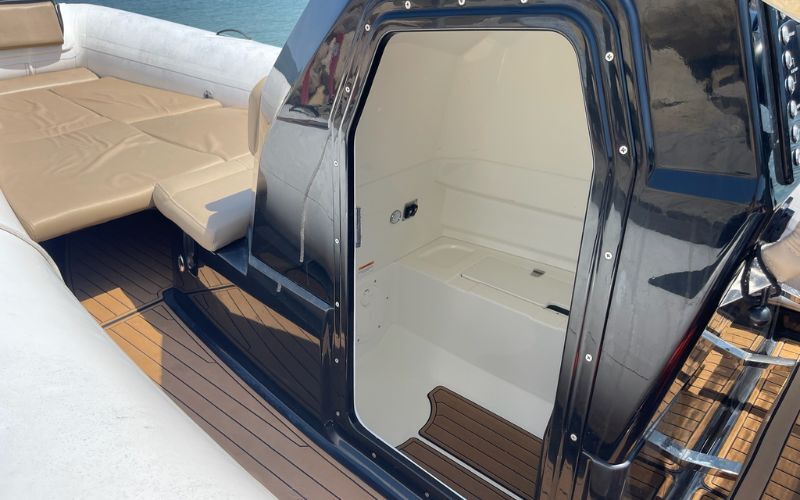 - Vorderes Sonnenbad - Sonnenliege hinten - Tisch vorne - Tisch hinten - Hinterer Strand - Kühlschrank - Fischfinder - Gps - Radiostation - Einhausung - Elektrische Ankerwinde - Sonnenverdeck hinten - Mast für Wasserski - Zigarettenanzünderbuchse - USB-Anschluss