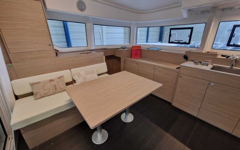 Palmes, masques et tuba, 8 jeux de divers taille a bord Panneaux solaires Dessalinisateur Annexe de 2.80m; 6CV En option : - Literie : 60€ par cabine - Ménage : 250€ - Gaz : 50€ - Genaker : 300€ / semaine - Paddle : 150€ / semaine - Barbecue : 80€ / semaine - Mini sous-marin : 300€ / semaine