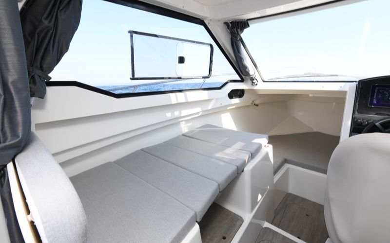 • Davier à rouleau • Échelle de bain • Feux de navigation • Baille à mouillage • Cockpit autovideur • Porte-cannes à pêche • Plateformes de bain • Eclairage LED de courtoisie • Balcon avant et barres de toit noires • Compteur/Compte-tours SmartCraft • Prise électrique 12 v • Volant haut de gamme • Banquette arrière • Rangements sous banquette arrière • Sellerie de cockpit • Table de cockpit supérieure • Douchette cockpit • Portillon d'accès arrière • Extension de banquette arrière en L • Rangements sous couchage • Siège pilote pivotant avec dossier abaissable • Banquettes pour coin repas • Panneau de pont ouvrant • Evier avec robinet • Montage double batteries • Détecteur de CO² • Détecteur de fumée • Extincteur • Direction hydraulique • Pompe de fond de cale électrique • Essuie-glace de pare-brise tribord • Lave-glace