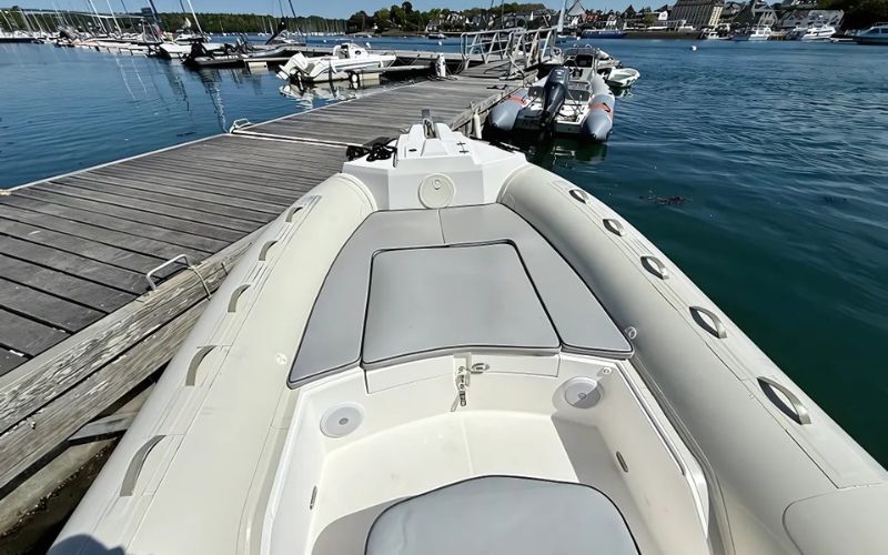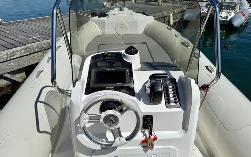 - GPS/ecoscandaglio touchscreen Lowrance HDS9 - Sistema audio Fusion - Roll bar in acciaio inox - Bimini - Doccia con acqua dolce (serbatoio da 45 litri) - Tavolo incernierato in pozzetto - Accendisigari e presa USB - Luci di navigazione - 2 portacanne - Attrezzatura di sicurezza per 14 persone - Salpa ancora elettrico