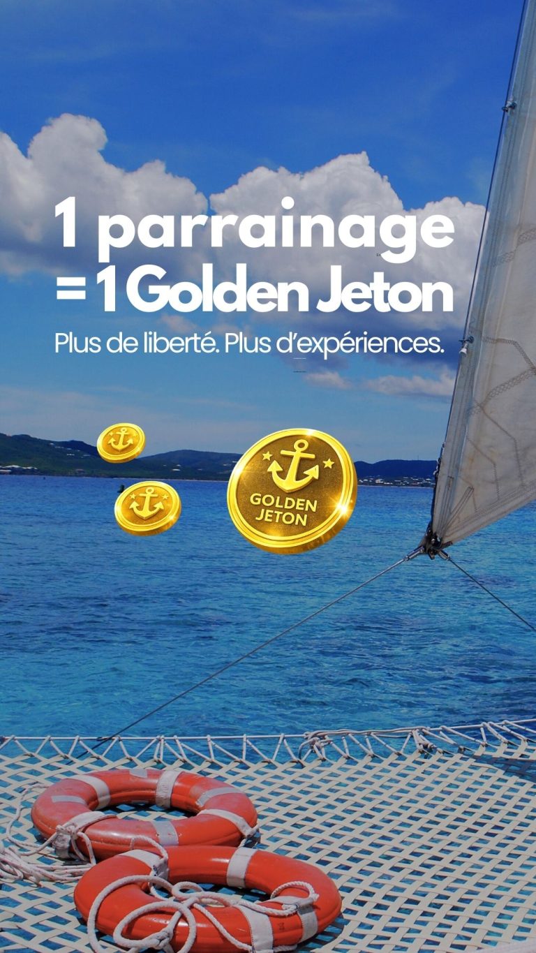 Quand votre filleul souscrit à un abonnement plaisance tout inclus, vous recevez un Golden Jeton. Ce jeton vous permet de bénéficier d’un avantage sur votre propre abonnement.
